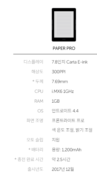 리디북스 페이퍼 프로( Paper pro)를 사용한 지 벌써 2년이 지났습니다. 2년이 지난 시점에서 솔직하게 사용기를 올려봅니다. 2년이나 지났는데 이제 와서 늦은 리뷰라고 생각하실지 모르지만 아직도 판매 중인 기기이며, 출시한 지 2년이 지났기 때문에 가격적으로 매리트도 있습니다. 현재 검색 최저가 16만원이며, 가끔 이벤트로 더 싸게 나올 경우도 있고 1+1으로 나온 경우도 있었습니다.